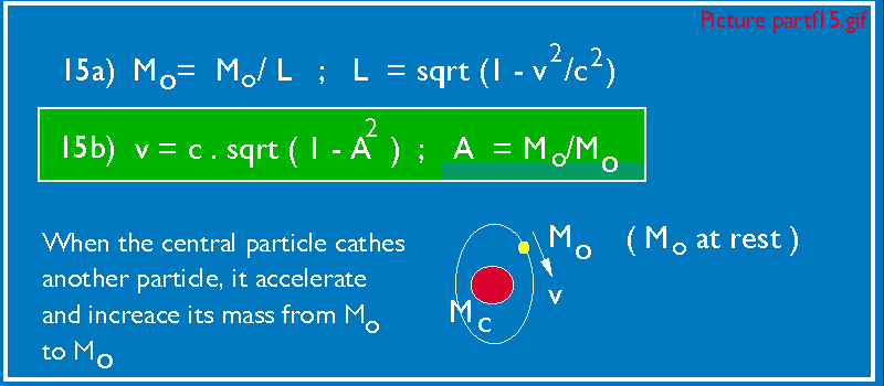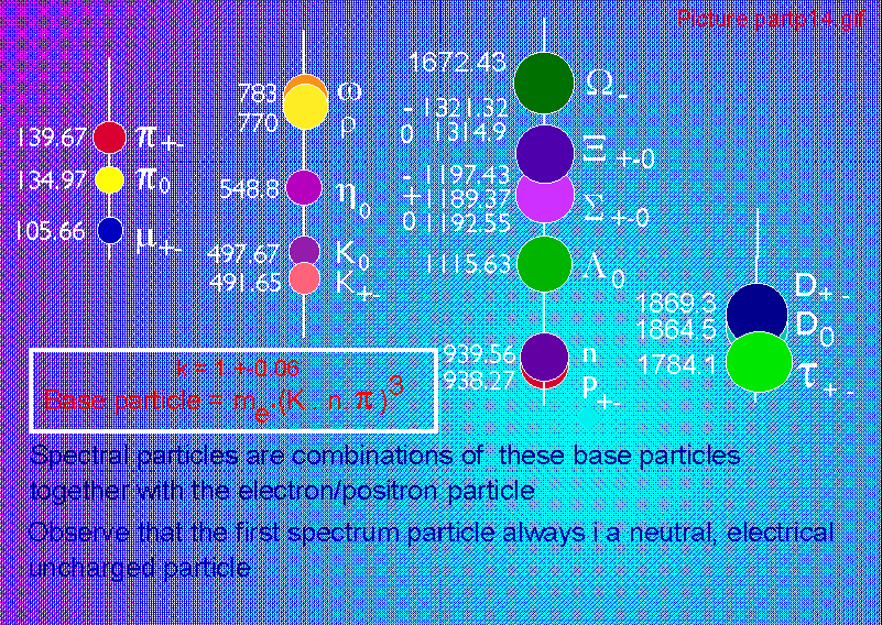 If we study the mass difference between the base particle and the nearest spectrum particle, we se that this mass difference not correspond with mass of any known singular particle. We easily see, that this mass difference can be motivated by a mass increase of the orbiting particle in accord with how mass is added to particle when reaching the system's inherent speed, the light velocity. The formula for this relation between mass and energy has been derived on our theory "Matter Unified" and is also known as the mass/energy equivalence formula :