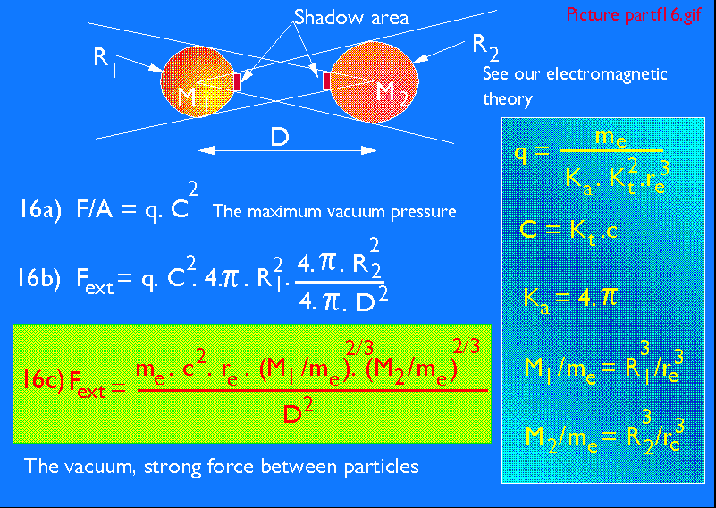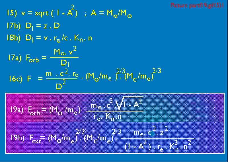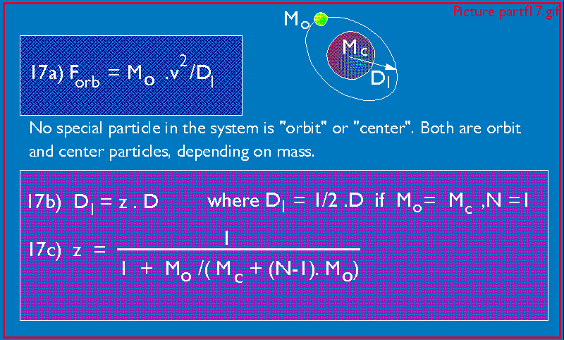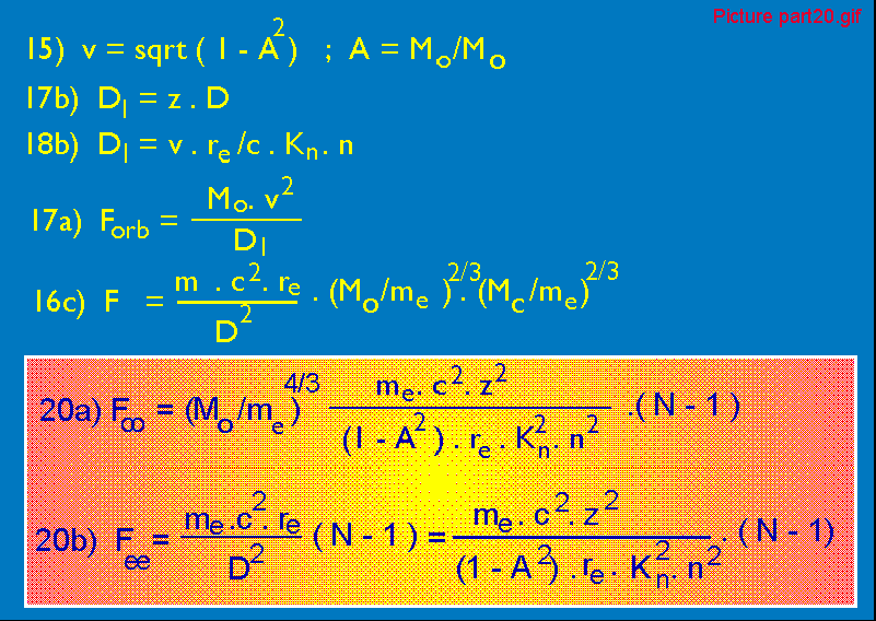 For the strong force interaction between orbits we simply exchange Mc in the formula 19b) with Mo and multiply with the number of orbital particles N-1. For the electromagnetic interaction, we uses the Coulomb's law.