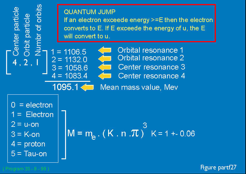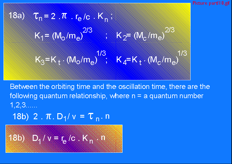 According our particle theory part1, every base particle in the system has two independent plasma resonance frequencies. These oscillations disturbs the environment electromagnetic field, which vary with these oscillations. An orbiting particle then will follow these variations, resulting in that the orbiting time will be equal to one of these system oscillations. In a system containing 2, hence there are 4 possible orbiting time resonance's, which are